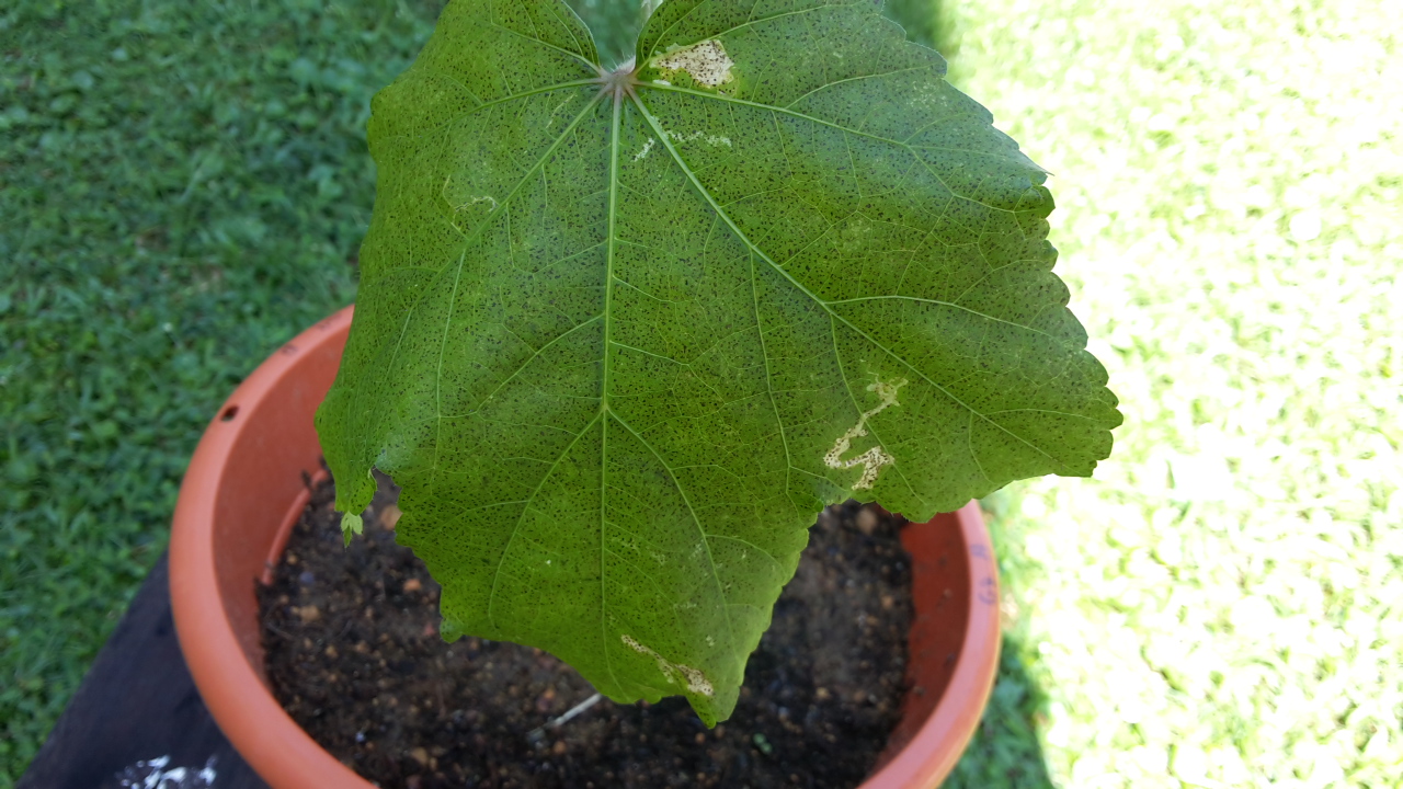 The young leaf in pot A and the flower buds in pot B has been eaten by the insect(s). New leaf was emerged.